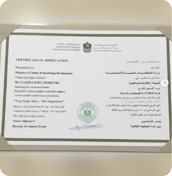 Development to BNF Management & Entertainment for the outstanding multimedia art exhibition Van Gogh Alive: The Experience.